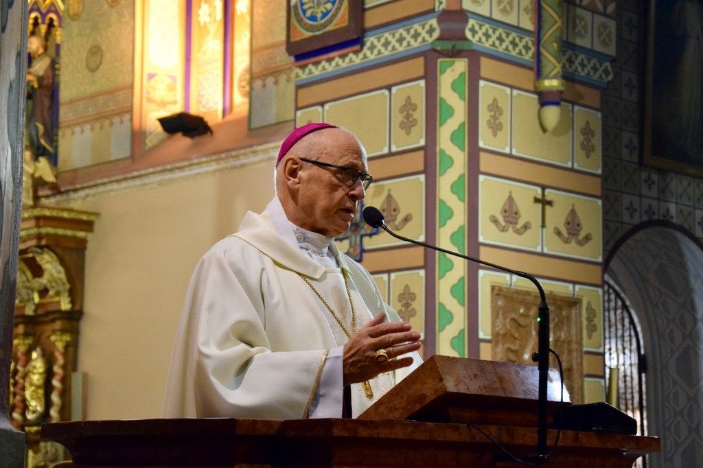 Homilię wygłosił, koncelebrujący Eucharystię, biskup senior Wiesław Mering, rycerz Kolumba. Podkreślił, że głównym powołaniem chrześcijanina jest bycie świętym, a źródłem świętości jest Jezus Chrystus, który nigdy człowieka nie zawiedzie. Nawiązując do Ewangelii dnia wskazał na znaczenie oraz potrzebę świadectwa chrześcijańskiego życia. „Świat obecnie przeżywa kryzys wiary, widzimy wszechobecną laicyzację, coraz mniej powołań, ale to nie jest pełen obraz, z drugiej strony jest coraz więcej wspólnot ludzi świeckich, którzy stanowią inspirację dla księży i biskupów przez świadectwo swojej wiary i służby Kościołowi”, mówił homilista.