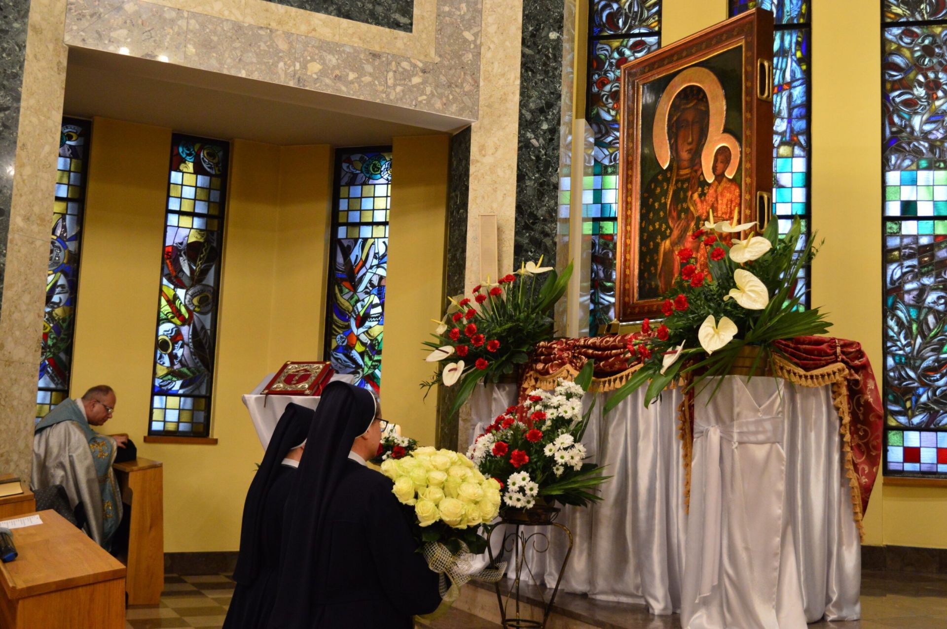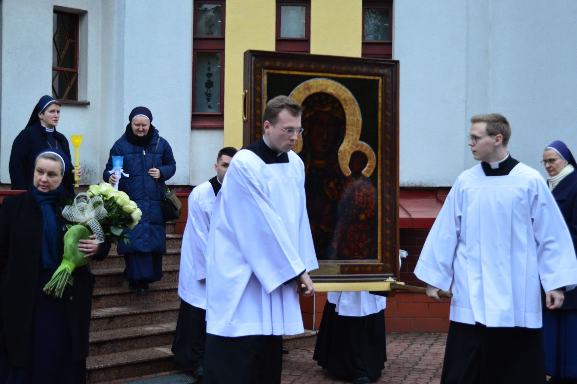 Niedziela 21 stycznia 2024 r. to ten oczekiwany dzień. Obraz Jasnogórski został przewieziony do nas z Domu Dobrego Pasterza w Michelinie. Ok. godz. 17.00 w procesji ze świecami został wniesiony do kaplicy na przygotowany tron. Po odczytaniu Ewangelii (Łk 1,39-45) przez ks. Kapelana zabrzmiał hymnMagnificat.Powitanie wygłosiła m. Agata Błaszczyk – przełożona generalna. Następnie rozpoczęły się Nieszpory – przed Najświętszym Sakramentem.