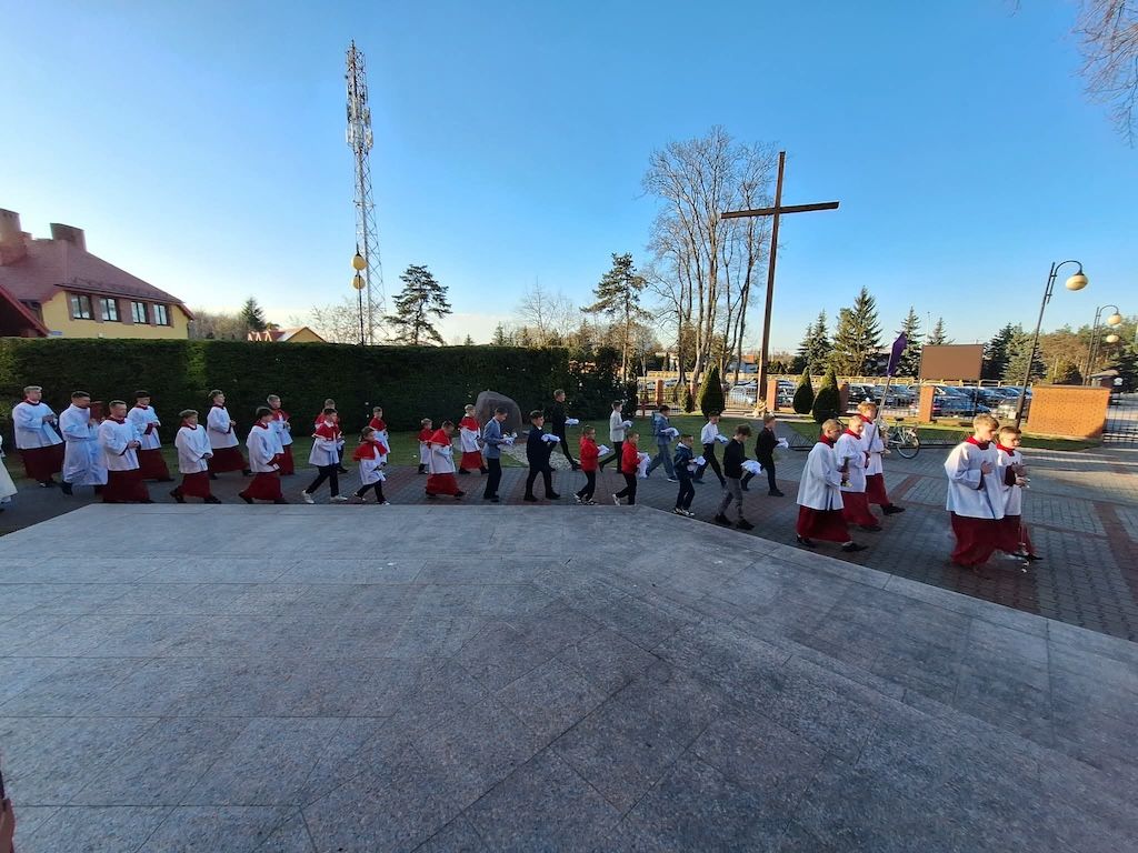 W parafii św. Idziego w Choceniu, podczas uroczystej Mszy Wieczerzy Pańskiej, pięciu chłopców – Jakub, Szymon, Alan, Jakub oraz Natan – zostało włączonych do grona ministrantów. Kandydaci przez niemal rok przygotowywali się do tej posługi, wykazując się zaangażowaniem i wytrwałością. W trakcie liturgii rozpoczynającej Święte Triduum Paschalne proboszcz parafii, ks. prał. Mieczysław Łaszczyk, udzielił im uroczystego błogosławieństwa oraz poświęcił ich komże. W swojej homilii nawiązał do Ewangelii i czytań wielkoczwartkowych, podkreślając znaczenie wzajemnej służby, do której powołany jest każdy człowiek, także nowo przyjęci ministranci.