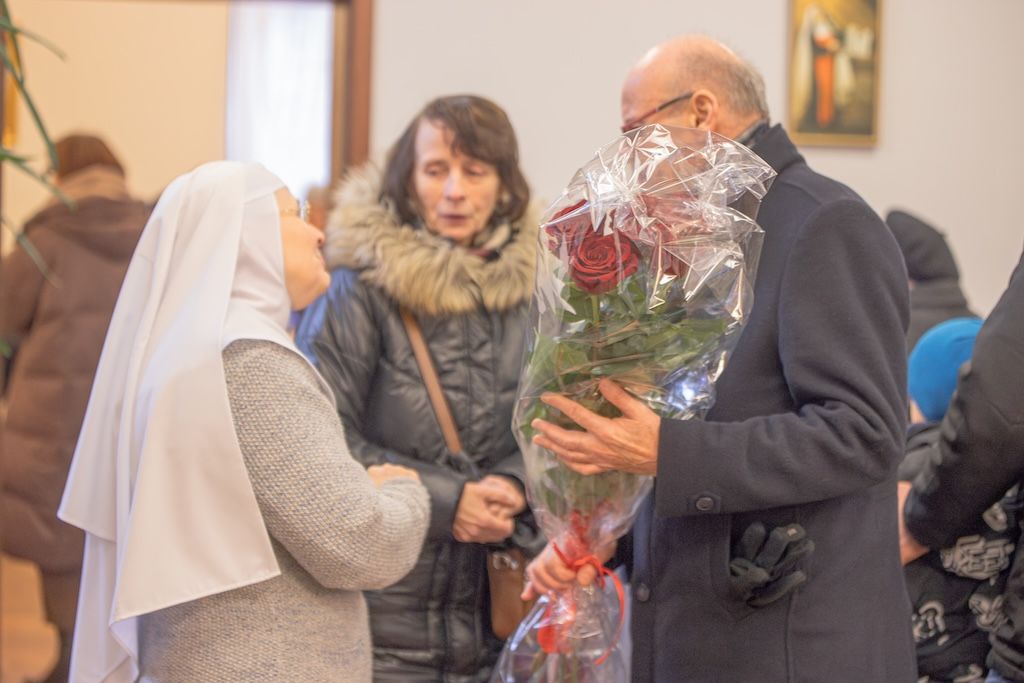 Mimo przejmującego chłodu na zewnątrz, atmosfera podczas uroczystościach była pełna ciepła. Siostry zaprosiły wszystkich obecnych na tradycyjny poczęstunek do klasztoru. Był to czas radosnych rozmów, uśmiechów i budowania wspólnoty. Wierni mogli osobiście porozmawiać z siostrami, które z właściwą sobie pogodą ducha dzieliły się świadectwem życia ukrytego w Bogu.