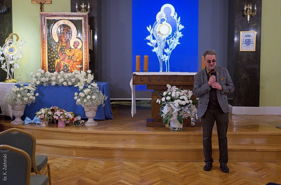 Uroczystości jednak trwały aż do godziny 21.00. W oczekiwaniu na Apel Jasnogórski uczestnicy nabożeństwa mieli okazję wysłuchać ciekawego świadectwa, z którym przybył pan Mariusz Drapikowski – artysta, złotnik i bursztynnik, współautorm.in. bursztynowego ołtarza w kościele św. Brygidy, twórca srebrno-bursztynowych sukienek dla Matki Bożej na Jasnej Górze oraz wielu przepięknych monstrancji umieszczonych w miejscach adoracji na całym świecie, w tym m. in. w Jerozolimie, w Kazachstanie, w Afryce. Prace pana Mariusza są owocem niezwykłych doświadczeń po uzdrowieniu z nieuleczalnej choroby. Zachwycają, a jednocześnie przyczyniają się do szerzenia adoracji Najświętszego Sakramentu we wszystkich zakątkach świata. Dzieła tego artysty wzbudzały zachwyt papieży: Jana Pawła II, Benedykta XVI oraz wielu ważnych osobistości ze świata polityki i religii. Bogate doświadczenia i świadectwo życia p. Mariusza Drapikowskiego są dowodem na niezwykłe działanie Boga i wstawiennictwo Matki Najświętszej w jego życiu.